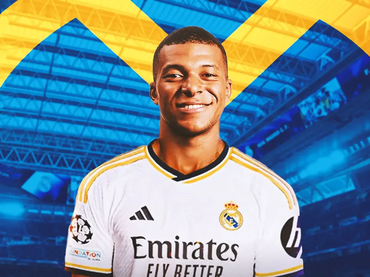 Kylian Mbappé merayakan gol dengan jersey Real Madrid